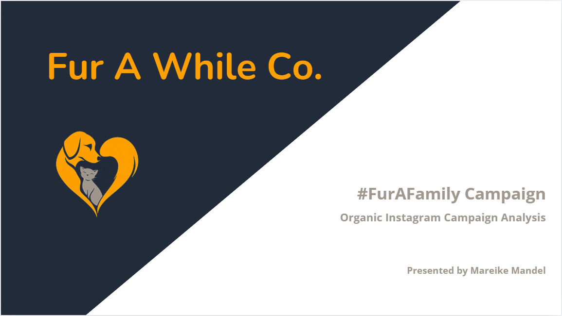 For this introductory digital marketing project, I planned, executed, and analyzed an organic social media campaign designed to increase brand awareness for a fictional organization - FurAWhile Co., a pet-focused company offering affordable products and services. The campaign was rooted in the team’s wider strategy to reverse plateauing sales by driving greater visibility and re-engaging audiences on a new platform: Instagram.