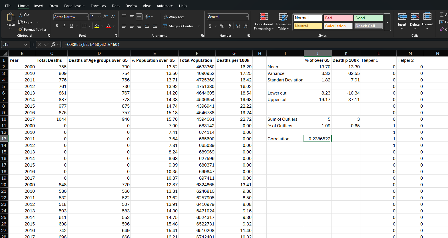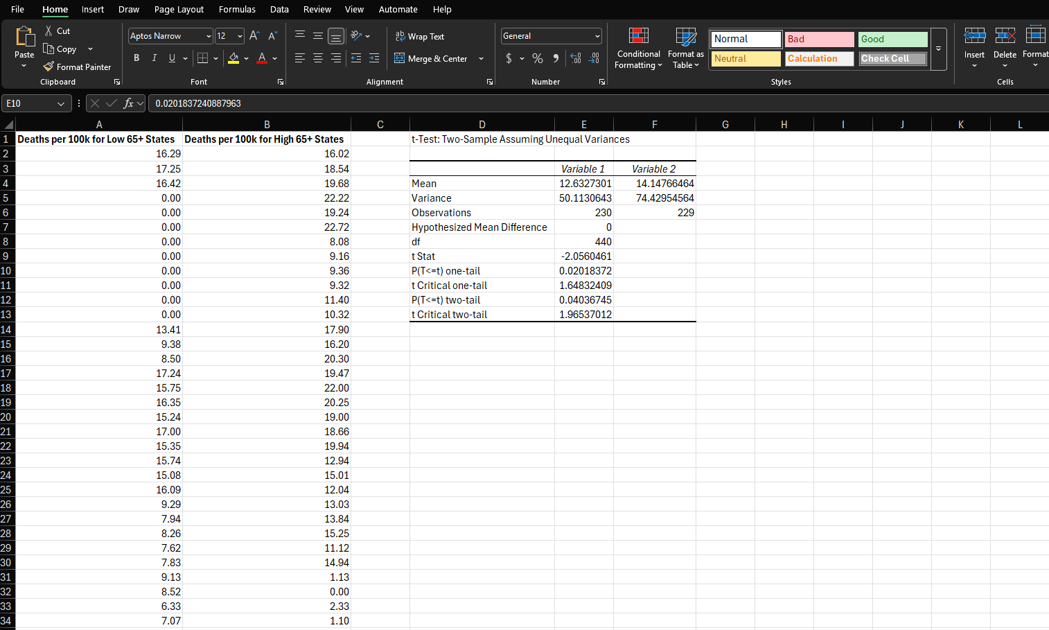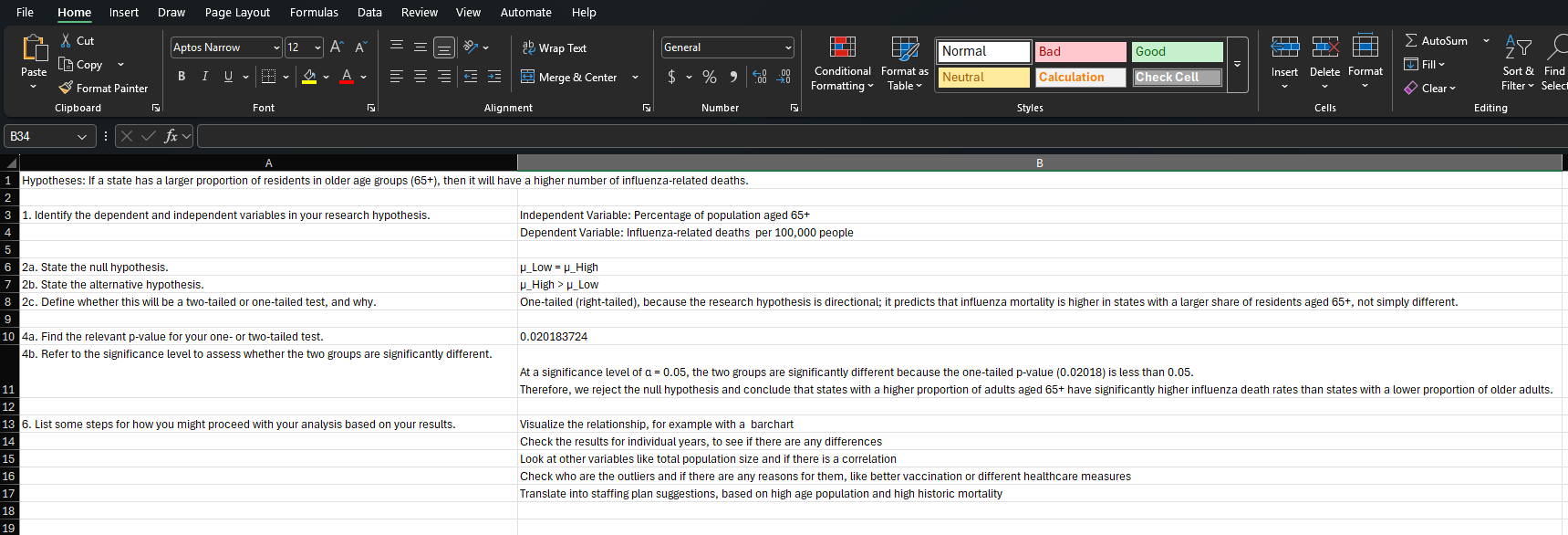 Excel, statistical analysis