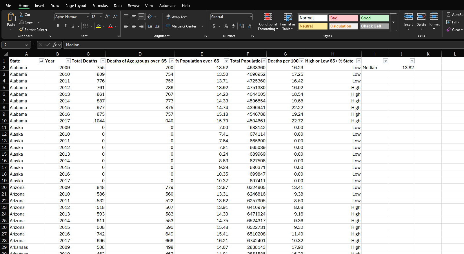 The analysis combined multiple public health datasets, including influenza mortality data and U.S. Census population estimates. After profiling and cleaning the data, I integrated the sources into a unified dataset aligned at the state level.